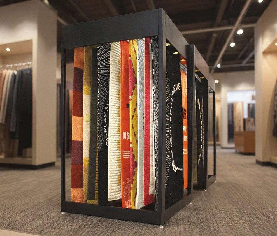 Showcase your carpet collection in a cleaner, more organized, and visually appealing way with a display system built for today’s retail needs. It combines strength, style, and flexibility to help you present products more effectively while saving valuable space.
